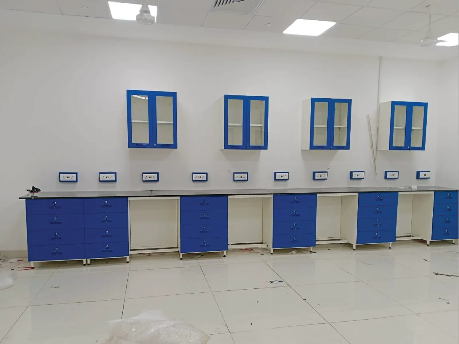 Santech Labs provides such universal pedestal system solutions in varied heights, which adds to the usefulness, versatility, and simplistic look. The basic structure has no bearing on its smooth and fuss-free operation. The system forms part of our full Laboratory Furniture range and is widely used in research, education, QA, and many other workshop applications.